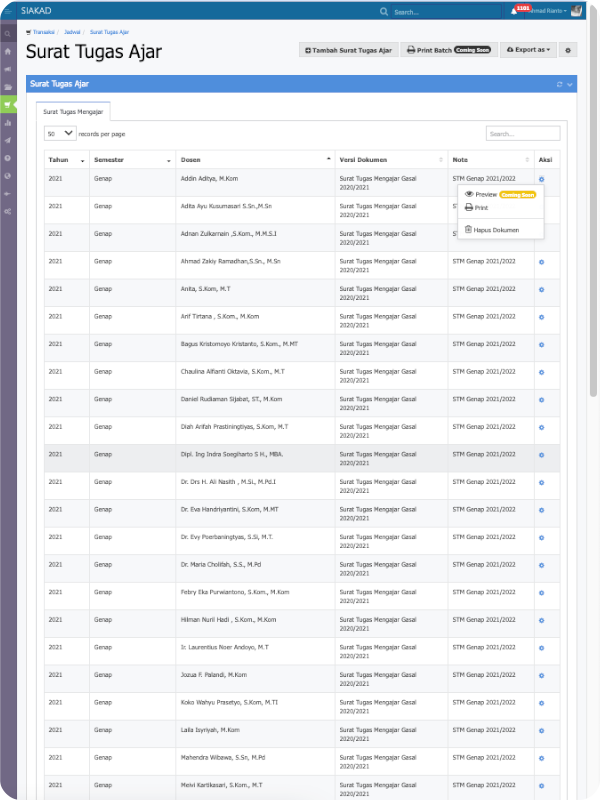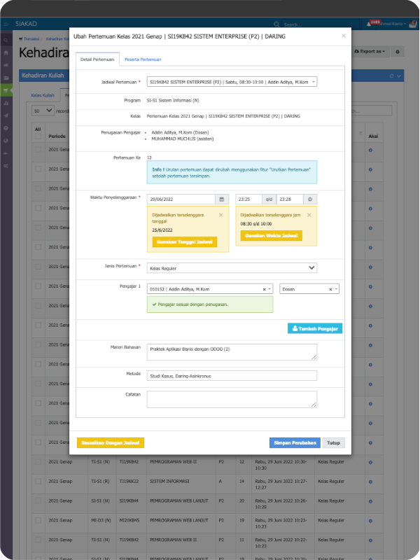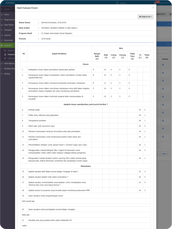 Apps can interact with any external application to share data. Currently, we support automatic synchronization with PDDIKTI Neo Feeder.