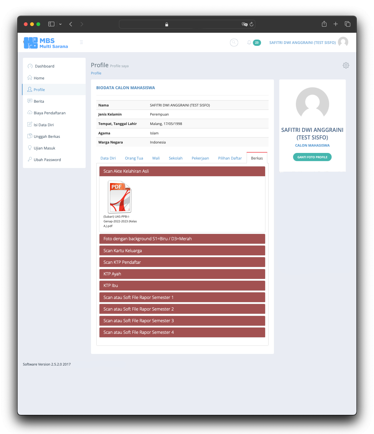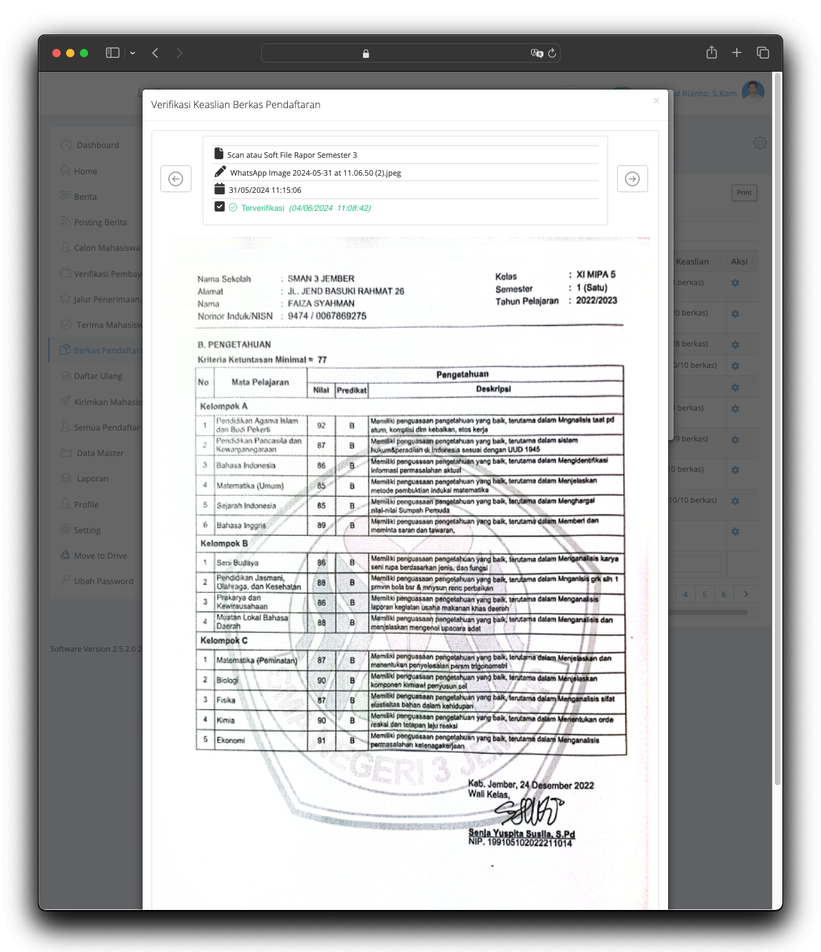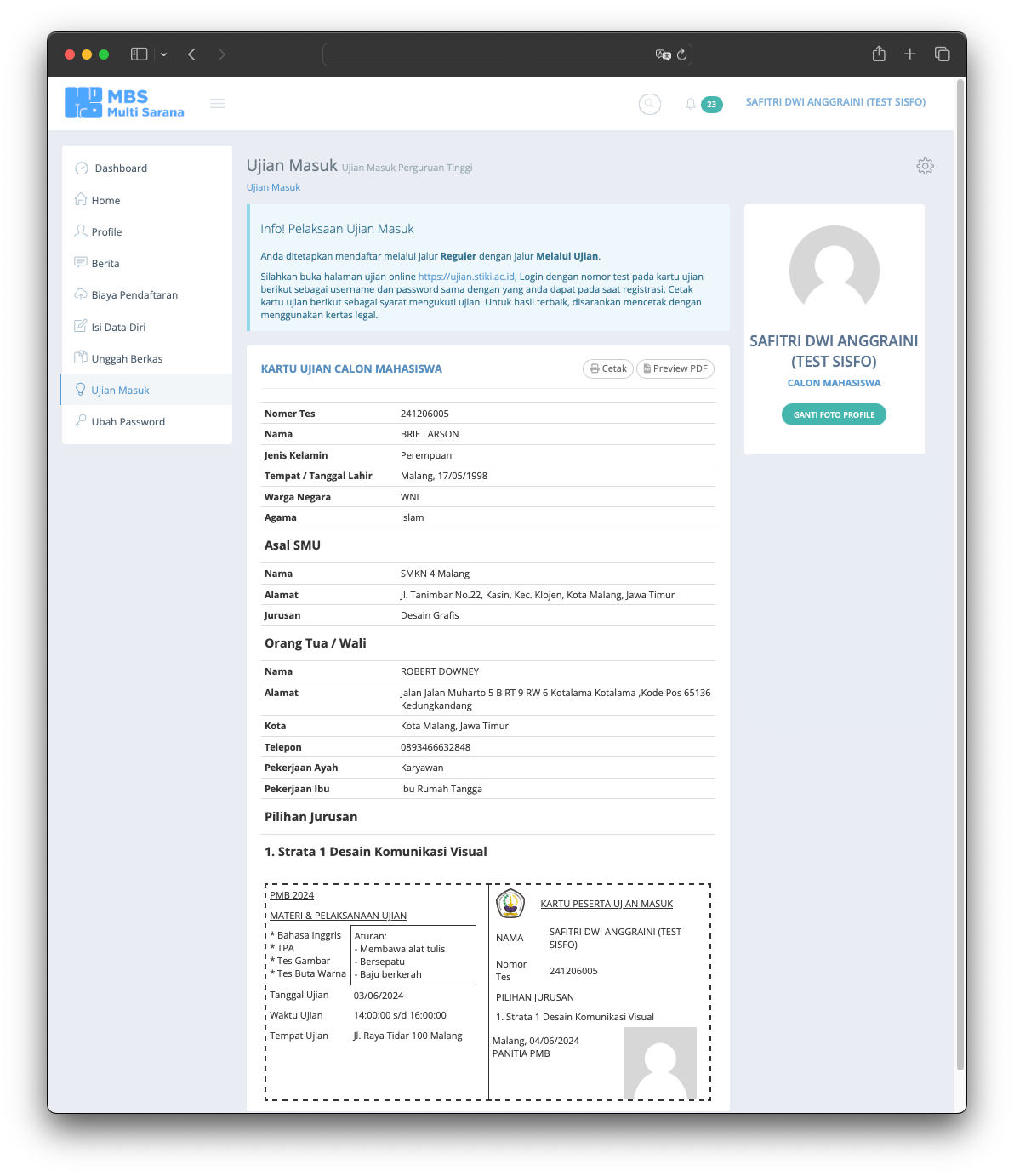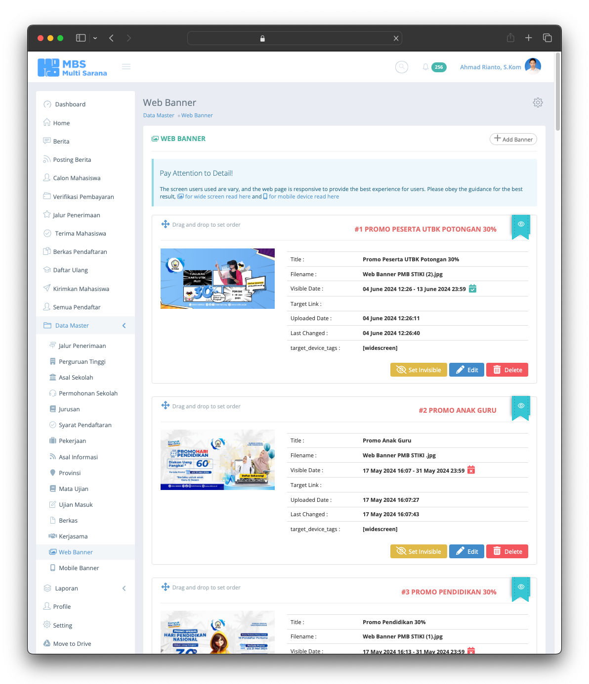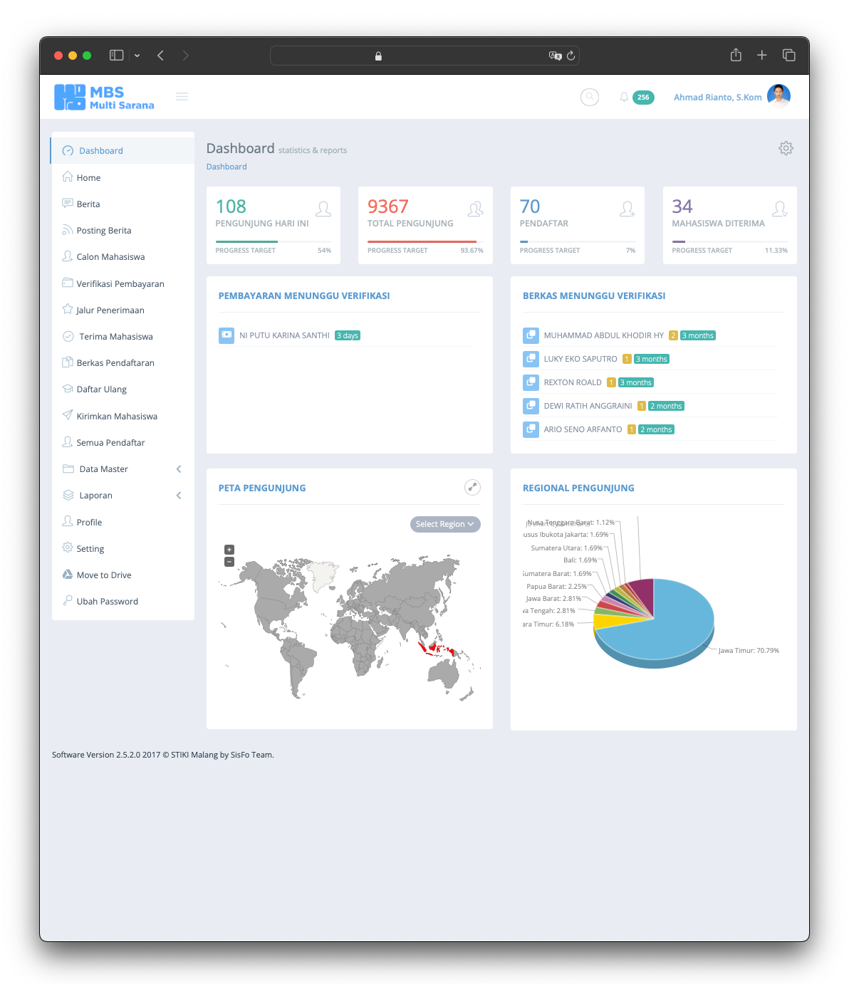 The Student Admission System is the information system used to serve users to register for the University. The application released in 2015 and still serve till today without any major issue. The application provide any needs of student and university 100% online from anywhere and anytime without require student to come to the office. The application allows students who live far away from the university to afford the registration without worrying about traveling far. The application manages everything such as registration fee, student data, required documents based on registration type, data validation, online test and scheduling, and last but not least integrating data into the Academic System.