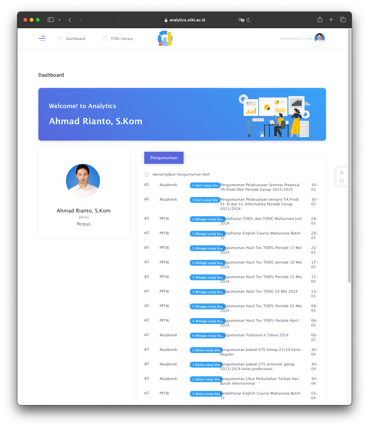 The Analytics is the application used to collect various data from websites, APIs, and other applications. Then with the assistance of a micro-service, The Analytics compiled the collected data to be easier and faster to query. Then display the data in various charts, tables, or infographics. The Analytics is designed to allow the decision maker to decide better and faster by providing any information they need to decide.
