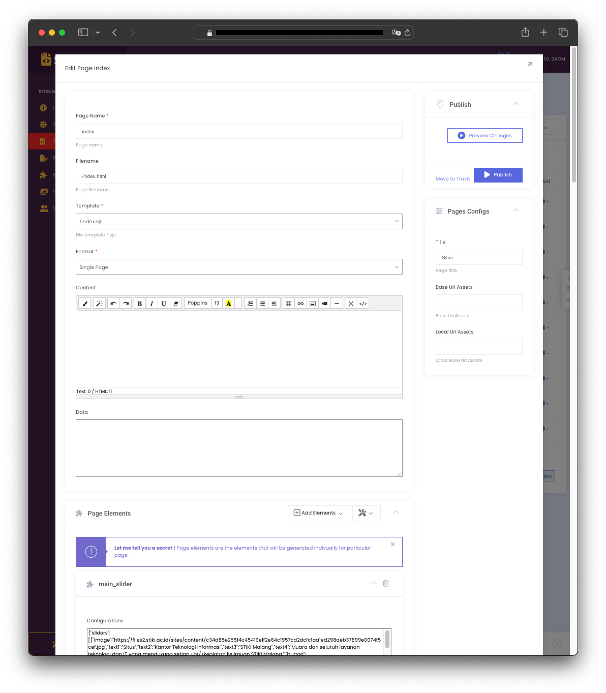 The Sites is a manageable static website. The Sites provide the friendliness of common CMS such as WordPress but are extremely fast and secure. A static HTML is always the best way to serve a website, it is fast without server-side processing. Lite because requires neither storage nor memory. Also more secure because no direct interaction from users. However static HTML is sometimes intimidating, requires coding capabilities, and is difficult to manage. The Sites is designed to embrace the native advantages of static HTML combined with the friendliness of user experience to simulate the joy of using CMS.