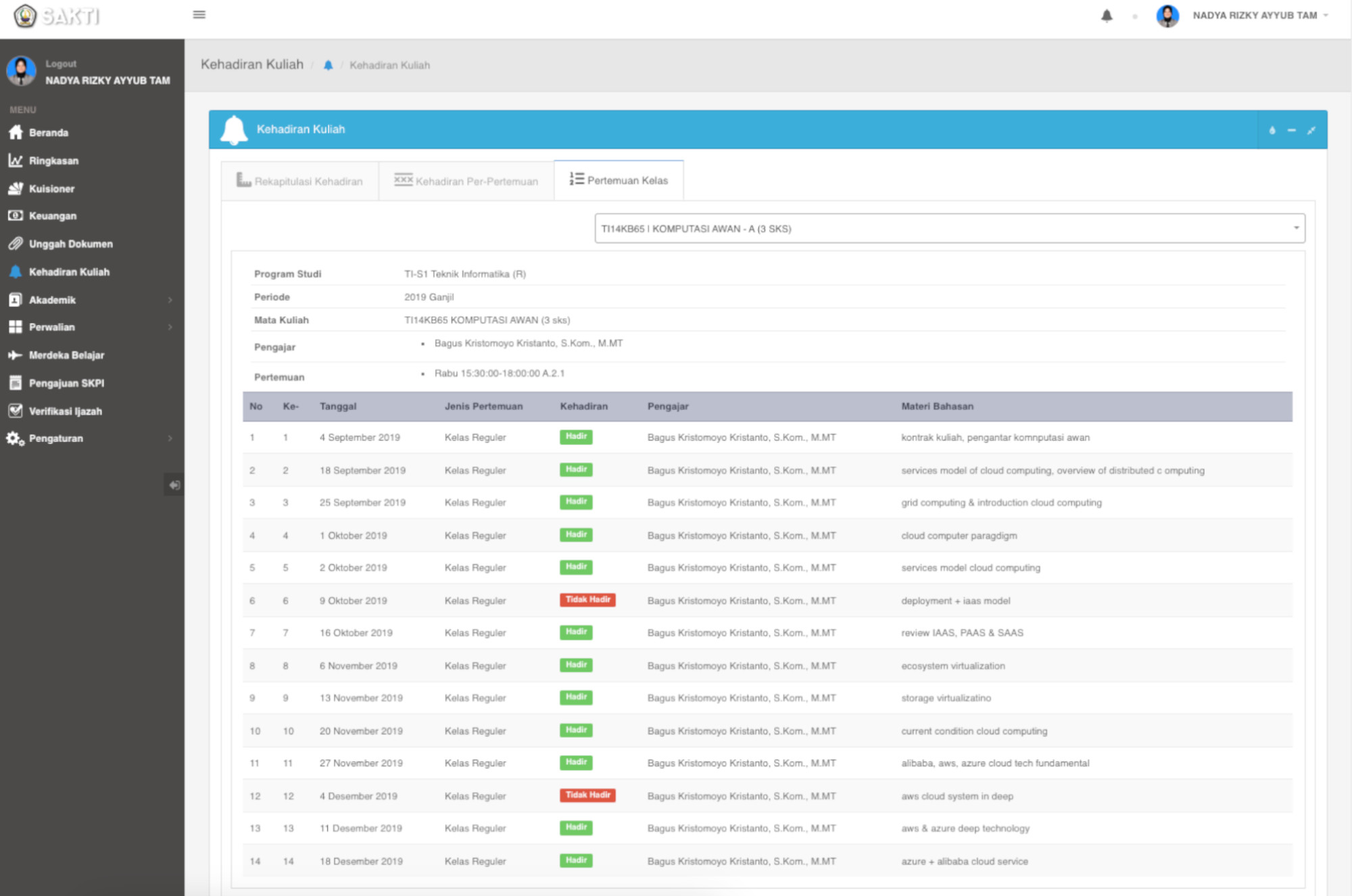 The Student Academic System is the information system to serve any student and teacher/lecturer's needs. The difference between SIAKAD and SAKTI is the target users. SIAKAD is designed for administration purposes and SAKTI is designed for public users. The reason behind the separation is to break the complexity of development and make it easier to apply security features without reducing the user conveniences. SAKTI also released at the same time with SIAKAD and has been on service since then without any major issues. Both applications successfully changed (in a good way) how the university managed. 100% paperless but also paper print available if any special need, usually been requested by external. Reducing queue for administration services. Fully online class registration from anywhere and anytime. Also increasing efficiency for calculating works so the rules can be applied better.